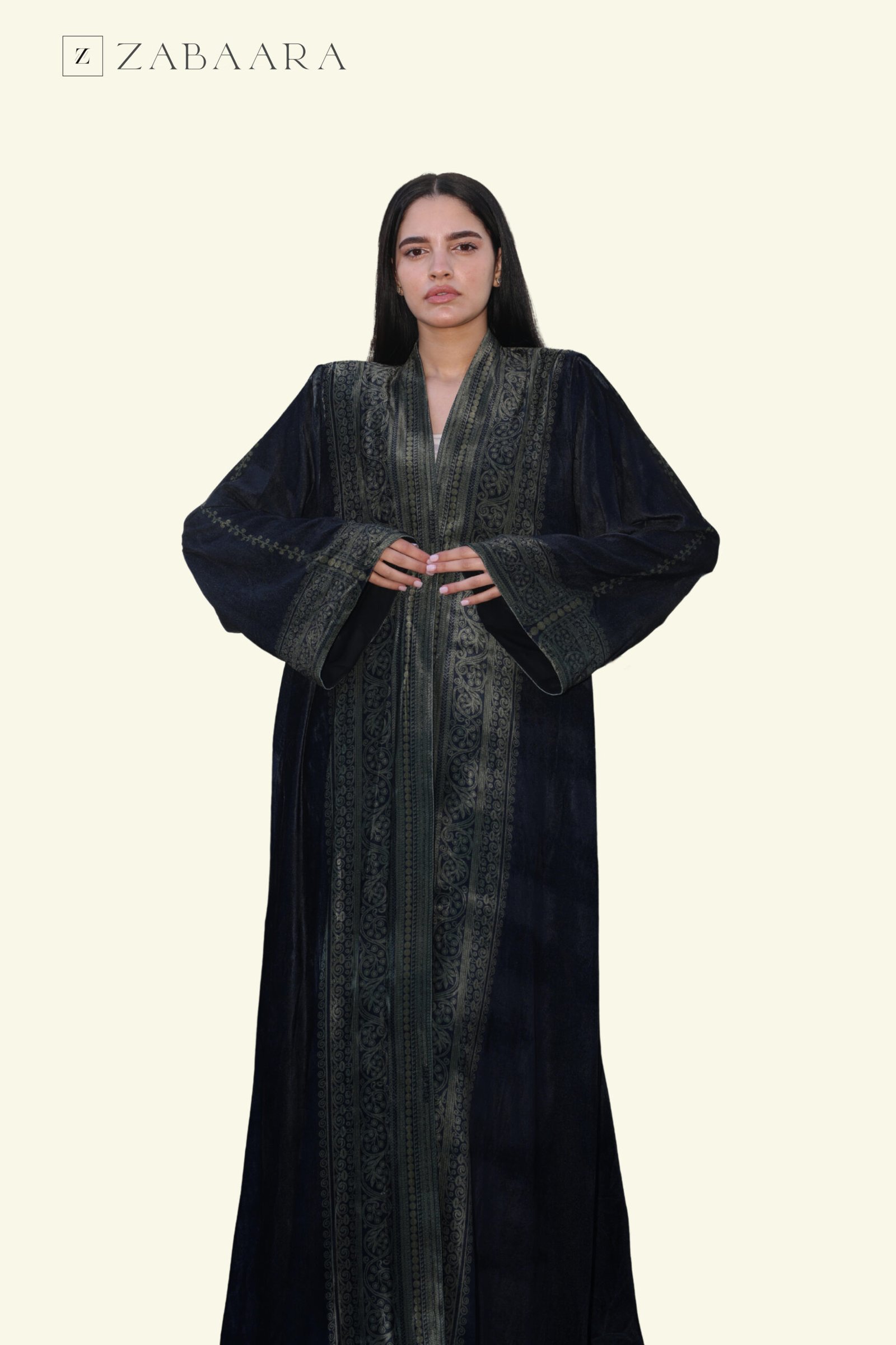 Taraz Olive Velvet Abaya